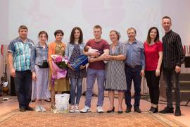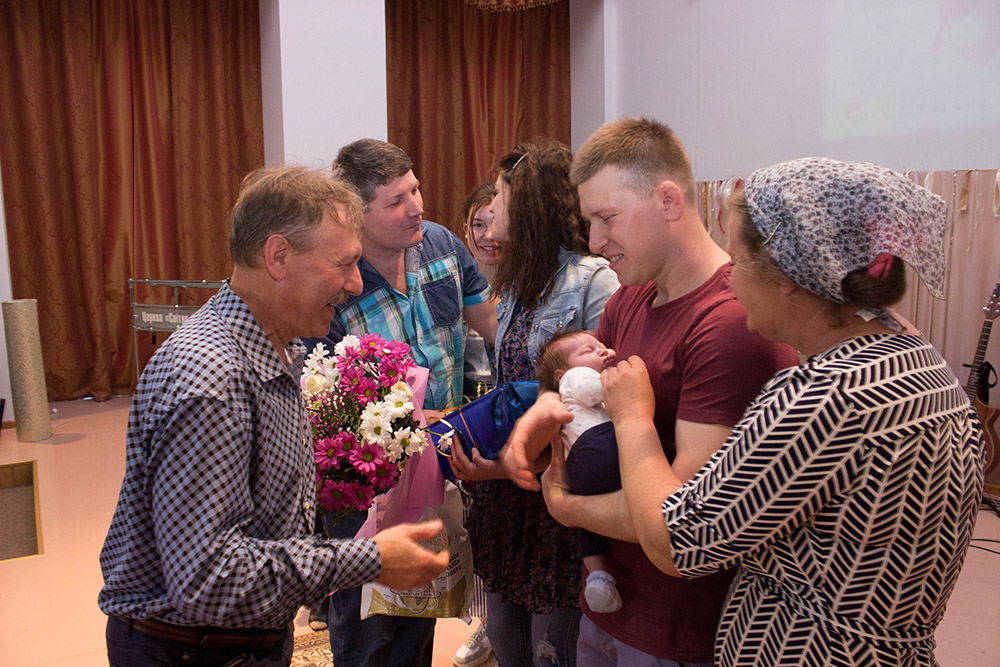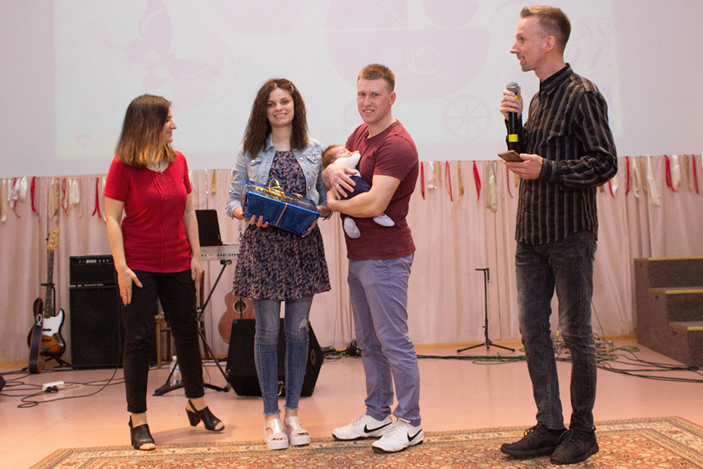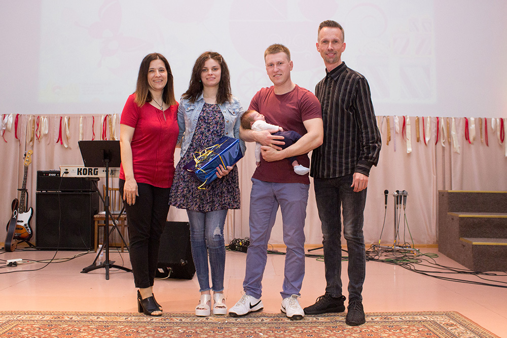 В воскресный день 19 мая в нашей церкви было благословение Даниила Михайлик. Молодые родители Василий и Таисия принесли своего новорожденного младенца в Дом Божий на молитву.