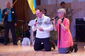 В это воскресенье было особенное богослужение, потому что с нами были наши друзья из Швеции Сив и Урбан Сансгард. Они пели песни хвалы и поклонения, молились за народ Украины и за нужды верующих.