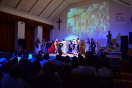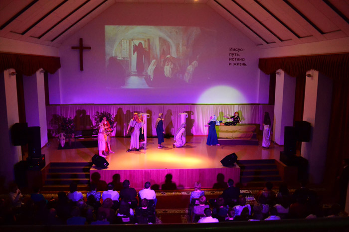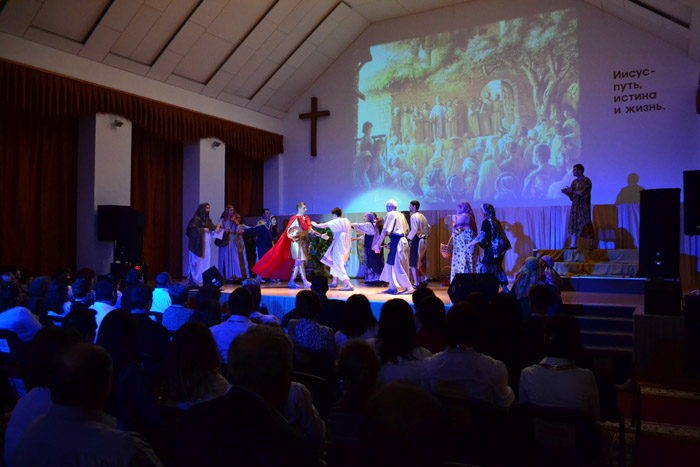 Также в этот воскресный день прозвучали замечательная песня с сурдопереводом для слабослышащих и тематическая музыкальная композиция на гармонике. Праздничное богослужение было особенным еще и, потому что в этот день состоялась премьера мюзикла «Церковь – надежда мира». Подготовка данного творческого проекта велась на протяжении двух лет. Захватывающий сценарий, тематические хореографические постановки, авторские песни, яркие костюмы и профессиональная режиссура не оставили равнодушными ни одного из зрителей присутствовавших в зале. А мощное звуковое оформление, яркий свет и впечатляющий видео ряд на большом экране помогли создать атмосферу и передать реалистичность происходящих на сцене событий. Благодаря эмоциональной игре актеров, трогательным сюжетам, динамичным массовым сценам и диалогам Библейских героев, каждый мог соприкоснуться с важными событиями христианской церкви в начале ее пути. По окончании спектакля зал был наполнен бурными аплодисментами благодарности всем организаторам и участникам спектакля.