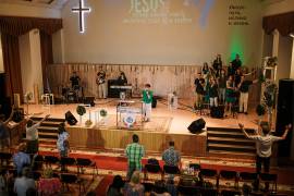 Праздничное служение в день Троицы начали с молитвы "Отче Наш", а также поблагодарили Бога за Духа Сятого, Который ведёт нас и наставляет.