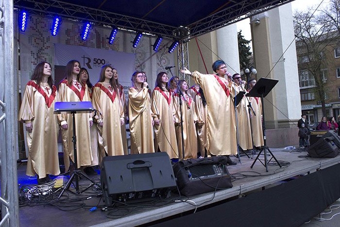 16 квітня у рамках програми святкування 500-річчя Реформації, на центральній площі міста Полтави пройшла концертна програма «Святкуймо Великдень разом!».