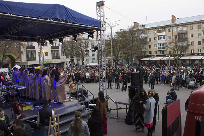 В недільний день жителі міста побували на чудовому Пасхальному концерті з виступами християнських колективів різних церков на Пасхальну тематику. Єпископи і пастори вітали присутніх зі світлим Христовим воскресінням та відкривали через Слово Боже його значення для кожної людини. Також, священнослужителі молилися за рідне місто, його жителів і за всю Україну.