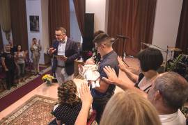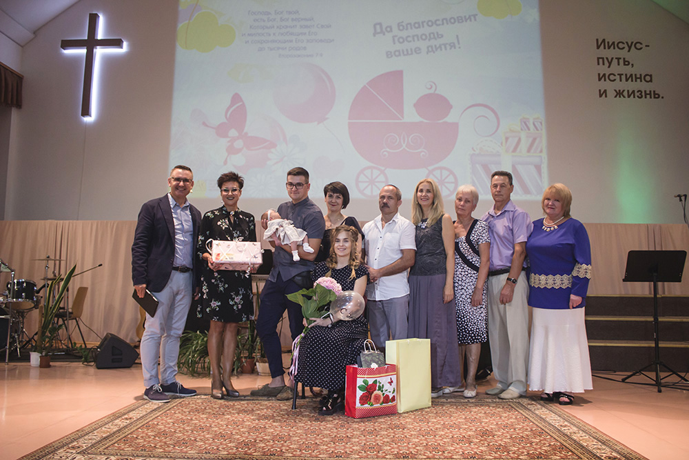 В последнее воскресенье июля в храм церкви "Свет жизни" супруги Владислав и Наталия Левицкие принесли на благословение свою новорожденную дочь Руфь.
